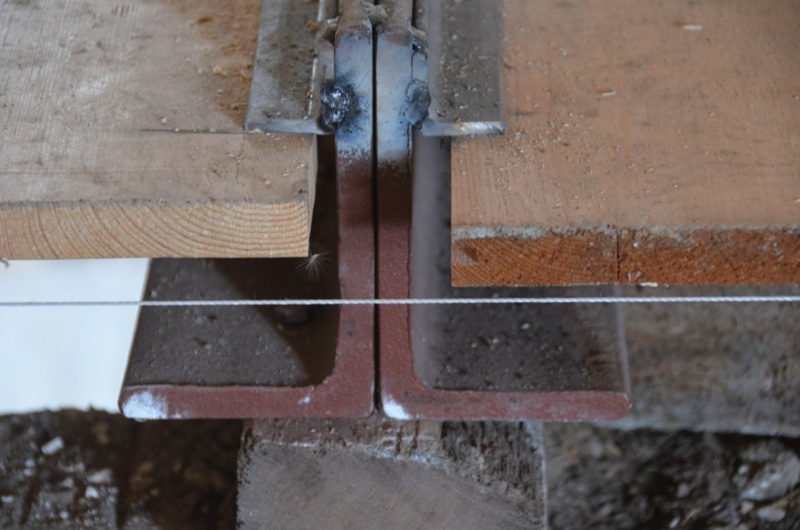 Het voorhuis kon niet achterblijven bij de deel en heeft nu z´n eigen stalen constructie. Een van de balken in de hal was gebroken, doorgebogen en ook eigenlijk niet dik genoeg maar wel zes meter lang. De balk is bewaard gebleven en op de foto onderaan nog te zien. Het staal ligt op de balk. Het hoogteverschil wordt opgevangen op de slaapkamer en overloop, waar de oude vloer zo´n 15 cm afliep.