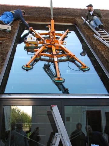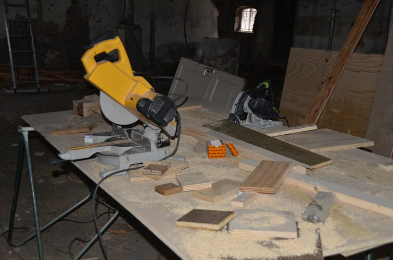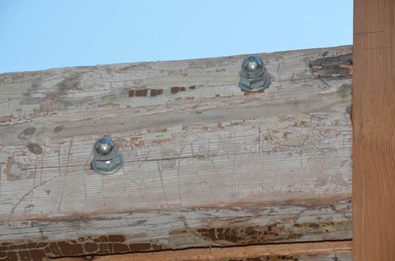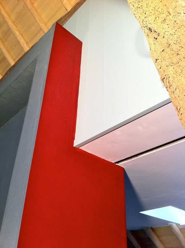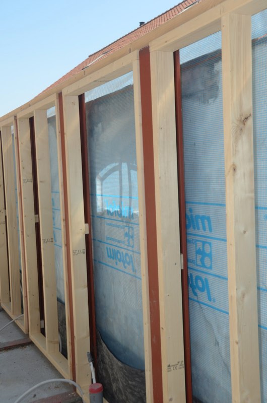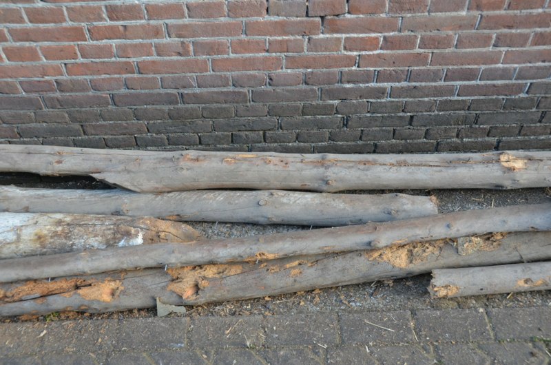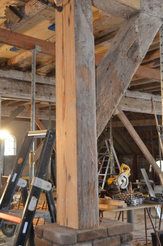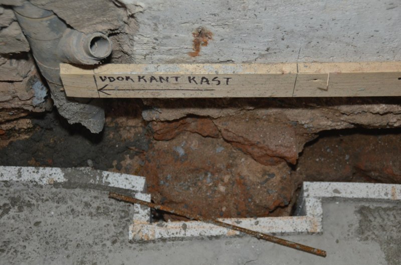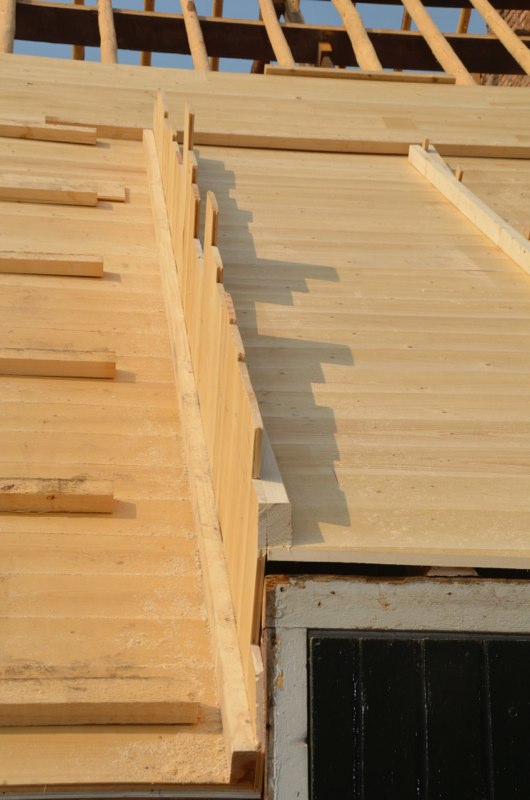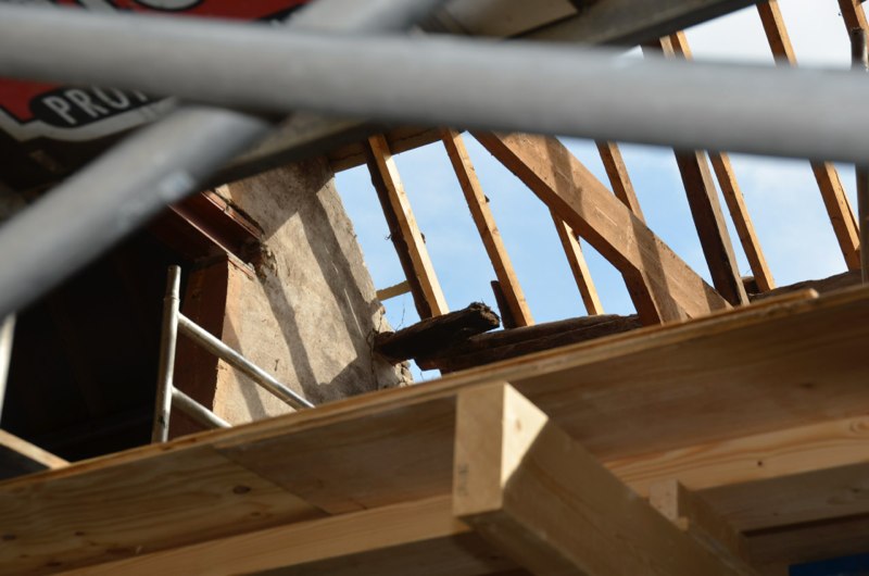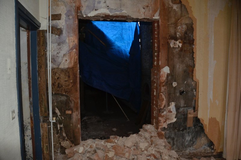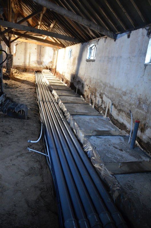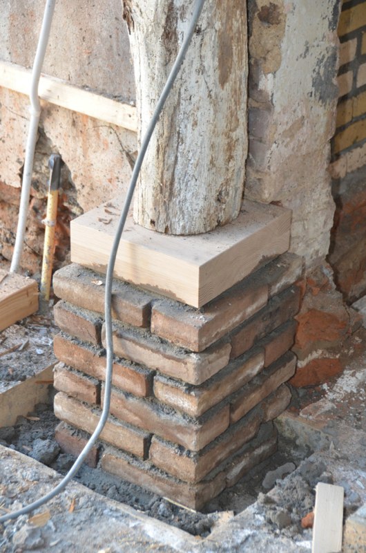 Op deze foto’s is te zien hoe de deel er uit zag bij het begin van de verbouwing. Na het slopen van een aantal 20ste eeuwse toevoegingen is de transformatie tot woonkamer begonnen. Het stokoude gebint is daarbij zoveel mogelijk intact gelaten. De daksporen en vloerbalken van de hooizolder waren vergaan. De sporen zijn vernieuwd. Door het verwijderen van de vloerbalken is er nu een vrij uitzicht op het dak met de sporen.
