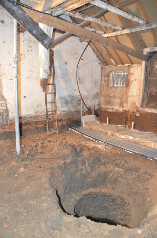 Bij de verbouwing hebben we een oude waterput en een kolder gevonden. Een kolder is een gestraat baantje waar een paard over liep om de karnton aan te drijven.