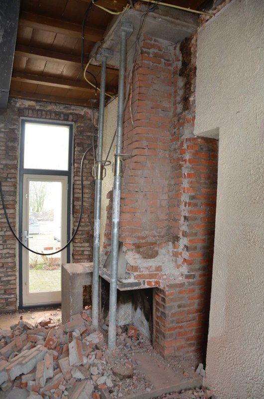 De oude keuken wordt later verbouwd tot studeerkamer. In fase II zijn daar al wel de vloer gestort en zijn de buitendeuren aangepakt.