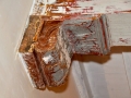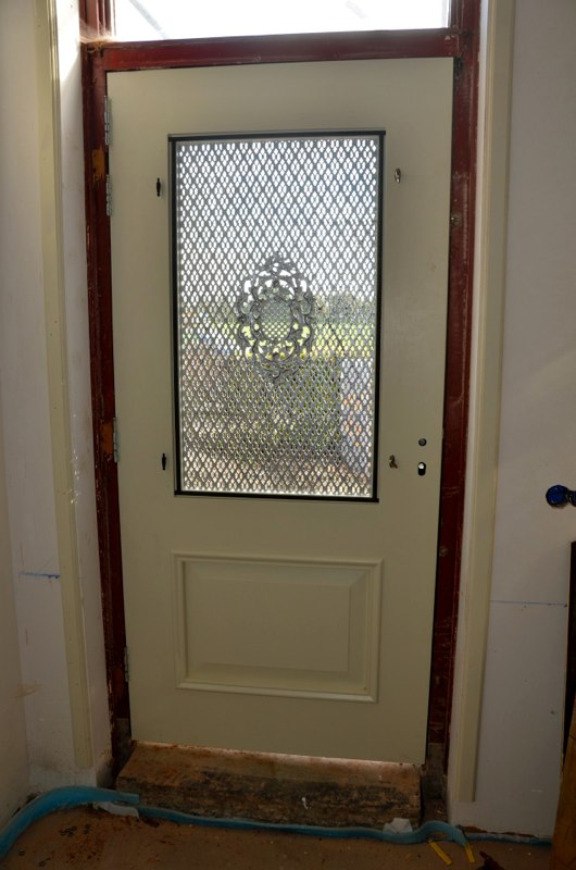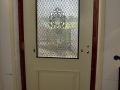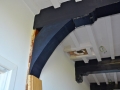 Omdat de trap verplaatst is naar de deel kon de bestaande trap in de hal uit de jaren zeventig worden gesloopt zodat het plafond kon worden gerestaureerd. Ook in dit gedeelte van het huis waren de daksporen verteerd zodat vervanging van het dak noodzakelijk was.
